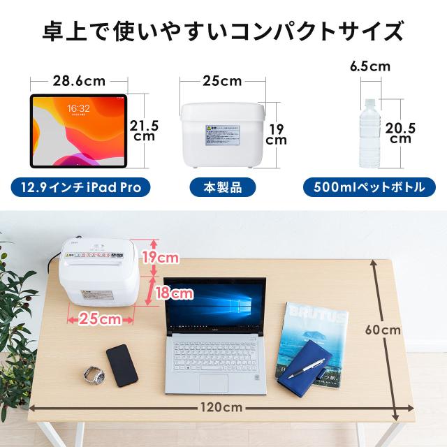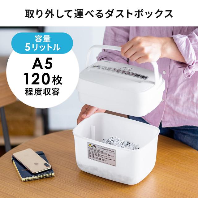 ●コンパクトな卓上サイズの電動シュレッダーです。●A5用紙を5枚まとめて細断できます。明細書やレシート細処分に最適です。