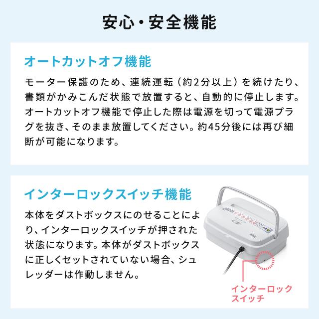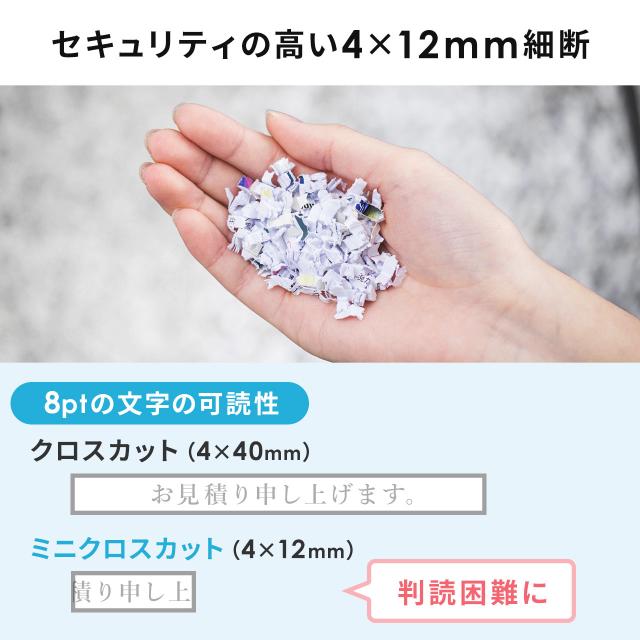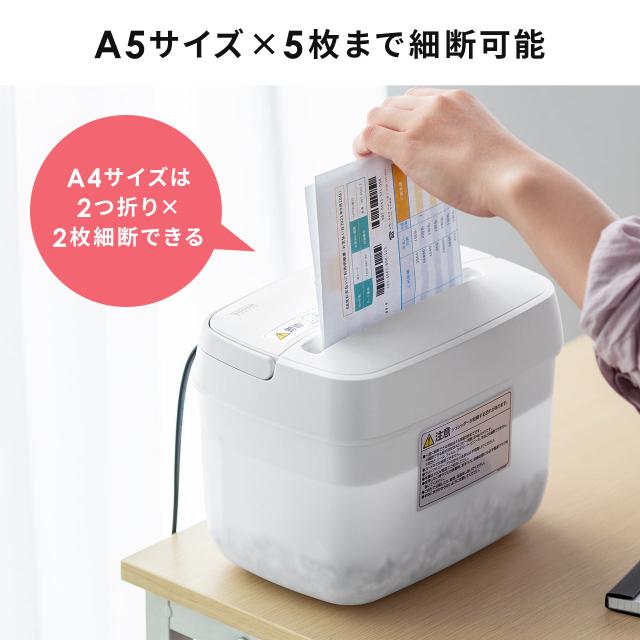 卓上 電動シュレッダー 4×12mm クロスカット A5用紙 5枚 連続2分 コンパクト[400-PSD058]