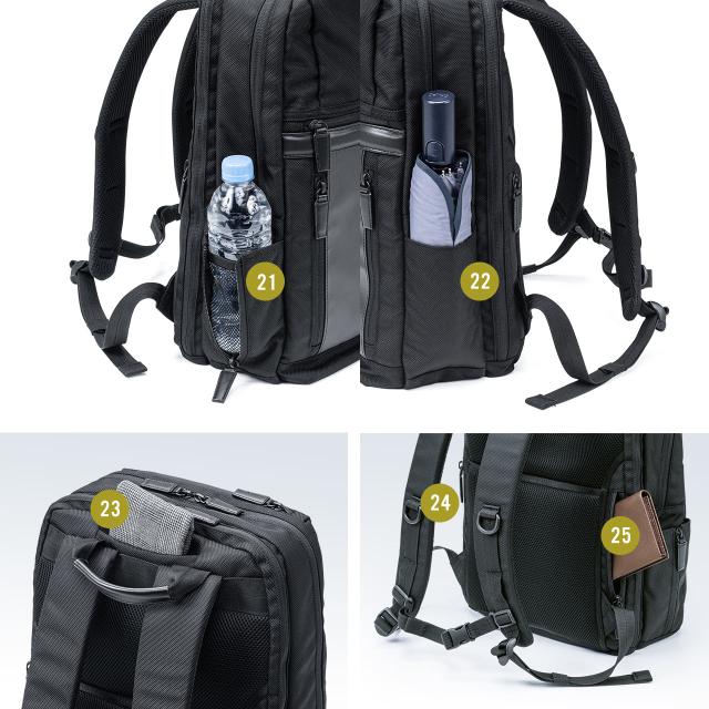 ●通勤などに便利なビジネスリュックです。●外装のナイロン1680D生地には汚れにも強く撥水効果のあるテフロン加工を施しています。