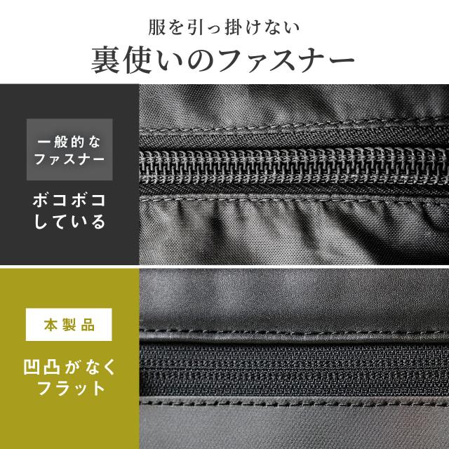 ●すべてのファスナーを裏使いで使用し、シャツ等に引っかかりにくい配慮をしています。