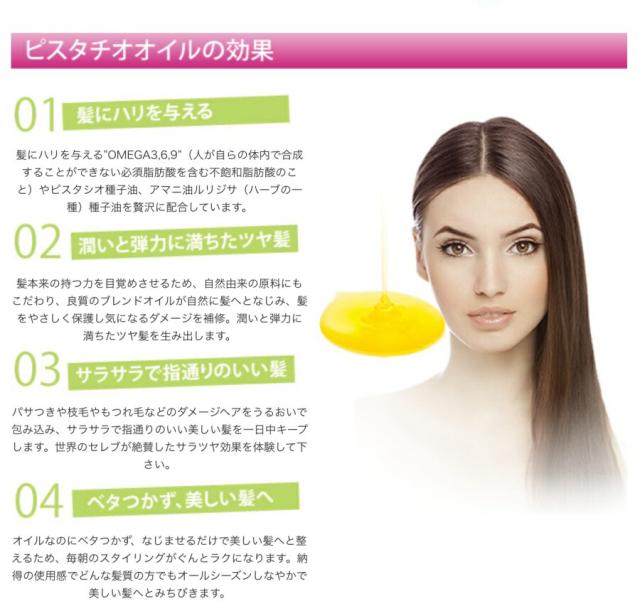 ピスタチオオイルは洗い流さないタイプのヘアトリートメント。