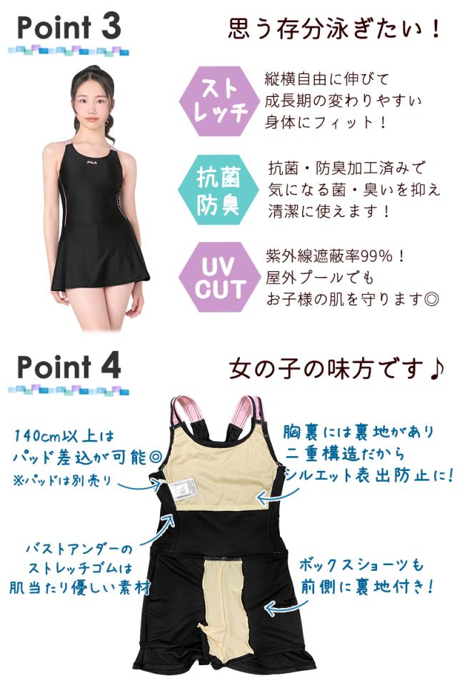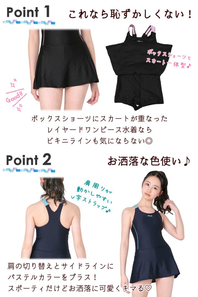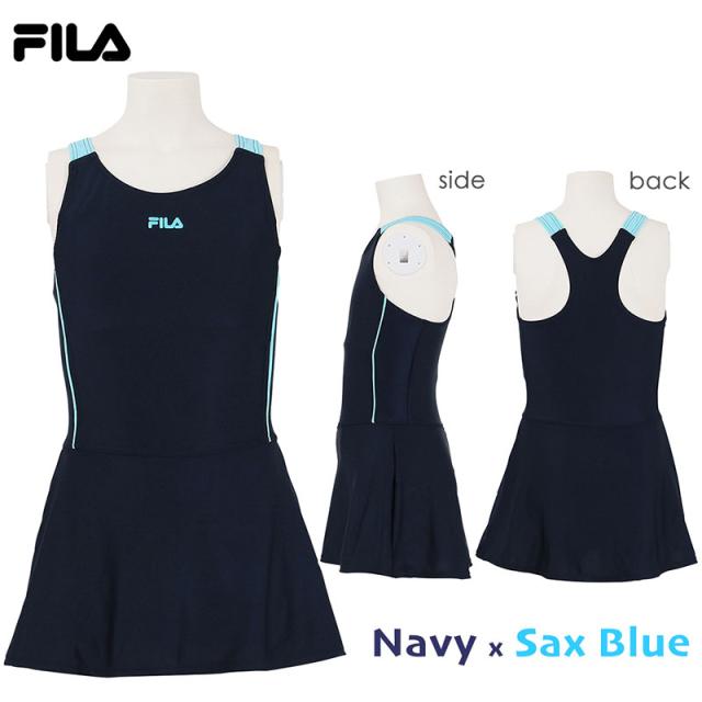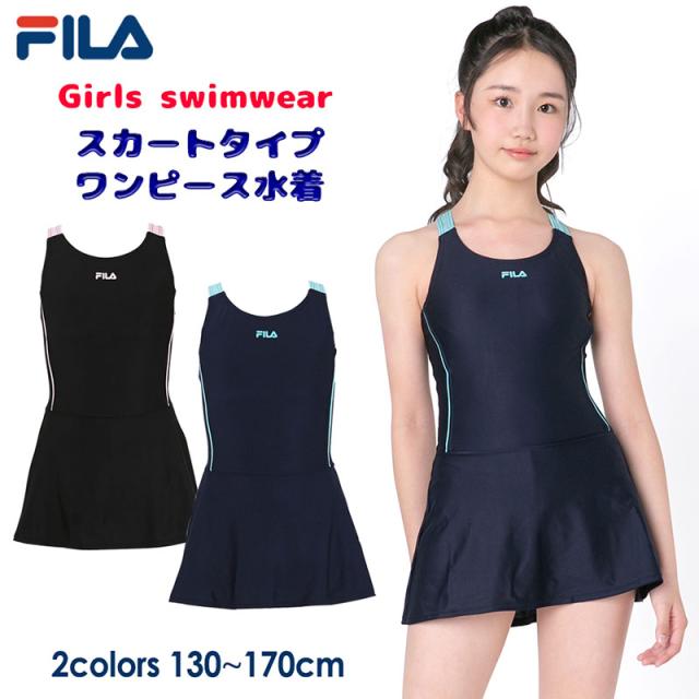 FILA フィラ ジュニア 水着 女の子 ワンピース水着 130 140 150 160 スクール 水着 学校 スイミング 《レビュー記入でメール便無料》 プール スカート 体型カバー 小学生 中学生 高校生 紫外線カット 128-687