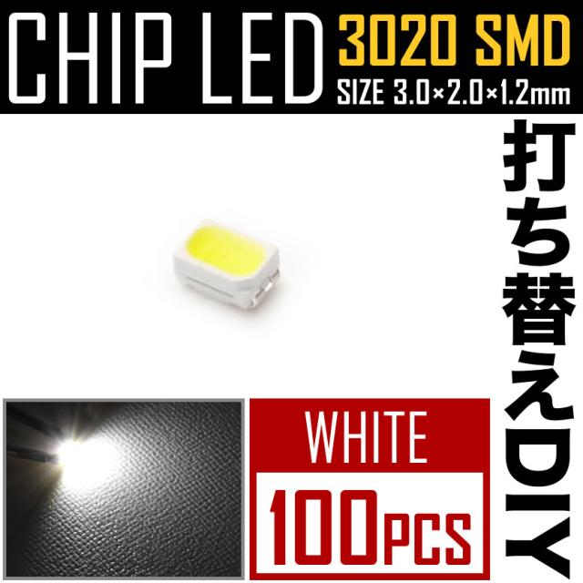 LEDチップ SMD 3020 ホワイト 白発光 100個 打ち替え 打ち換え DIY 自作 エアコンパネル メーターパネル スイッチ