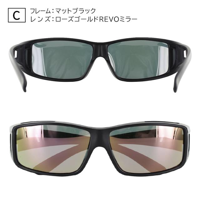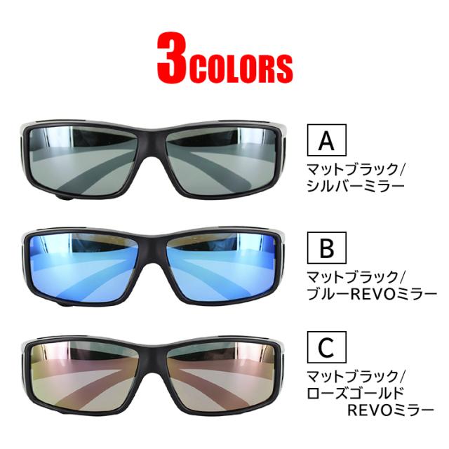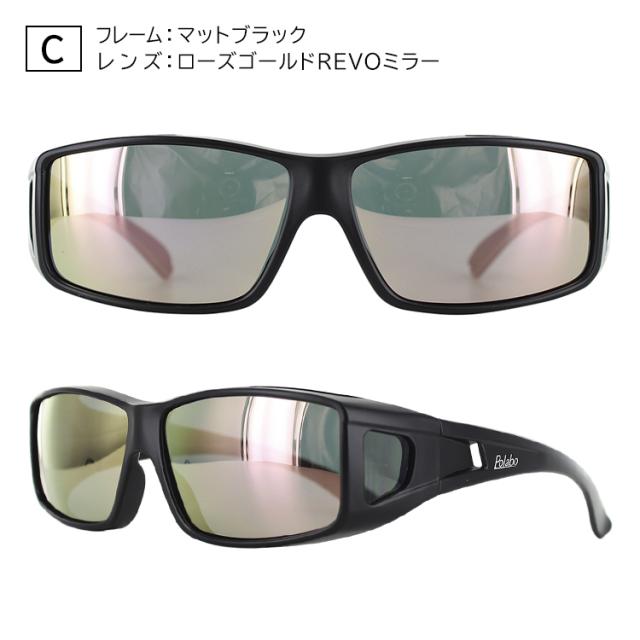 | 【A】 フレームカラー:マットブラック レンズカラー:シルバーミラー 【B】 フレームカラー:マットブラック レンズカラー:ブルーREVOミラー 【C】 フレームカラー:マットブラック レンズカラー:ローズゴールドREVOミラー | フレーム:プラスチック テンプル:プラスチック レンズ:プラスチック(偏光) |