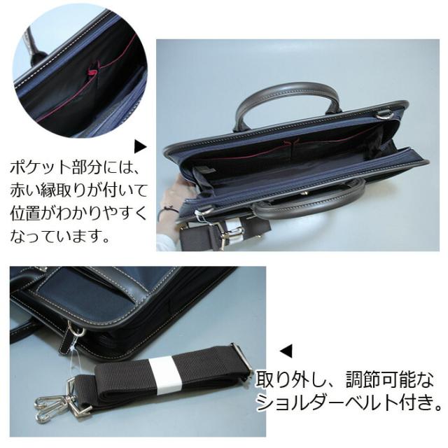 | シングルルーム仕様!撥水加工!スマートでスタイリッシュ!洗練されたデザインのビジネスバッグです。 本体前面に、オープンポケット付き。A4クリアファイルも入るサイズ! メイン部分片側は、ファスナーが下まで下がり大きく開くことができ、荷物の出し入れもスムーズ。 本体内部には携帯電話用ポケット、ペン挿し、小物用ポケットが付いています。 ポケット部分に縁取りがしてあるので、ポケットがわかりやすく使いやすい! また、取り外し、調節可能なショルダーも付いているので、2WAYでお使いいただけます。 機能的デザインで、見た目スッキリ、書類や小物の整理のしやすさ抜群! 年齢、性別を問わずお使いいただけるビジネスバッグです。 ●商品サイズ・カラーは、企画サイズとなります。 ●商品画像につきましては、モニターの種類・設定等により、実際の商品とは素材感や色味が異なる見え方をする場合があります。 ●商品仕様は、予告無く仕様変更される場合がございます。予めご了承下さい。 ● 生地にわずかな織糸の縫いこみなどがある場合がありますが、目立つ程度ではございませんので予めご了承ください。 | |