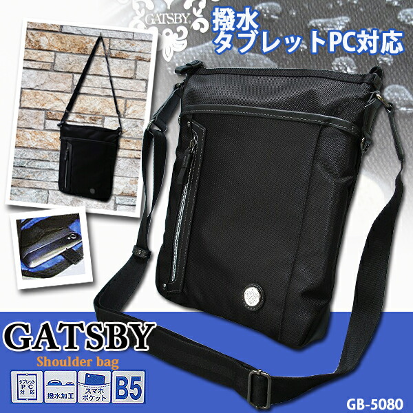 【GATSBY】縦型 撥水 タブレットPC対応 ショルダーバッグ 【GB-5080】多機能 上品 メンズ 男女兼用 ビジネス 旅行 撥水加工 スマホポケット B5サイズ対応【D1】
