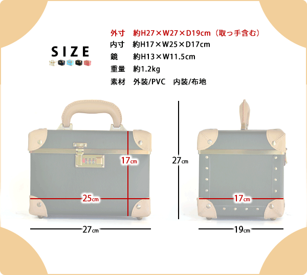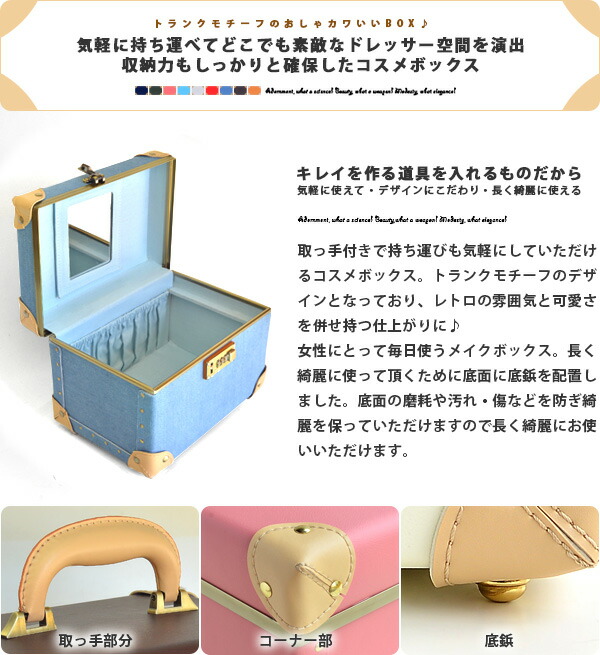 送料無料 コスメボックス sサイズ メイクボックス トレンチケース レディース 人気 鏡付き かわいい 収納ケース ビューティー 用品 化粧品入れ ネイル 小物入れ レトロ トランク cbx-s ホワイトデー 母の日