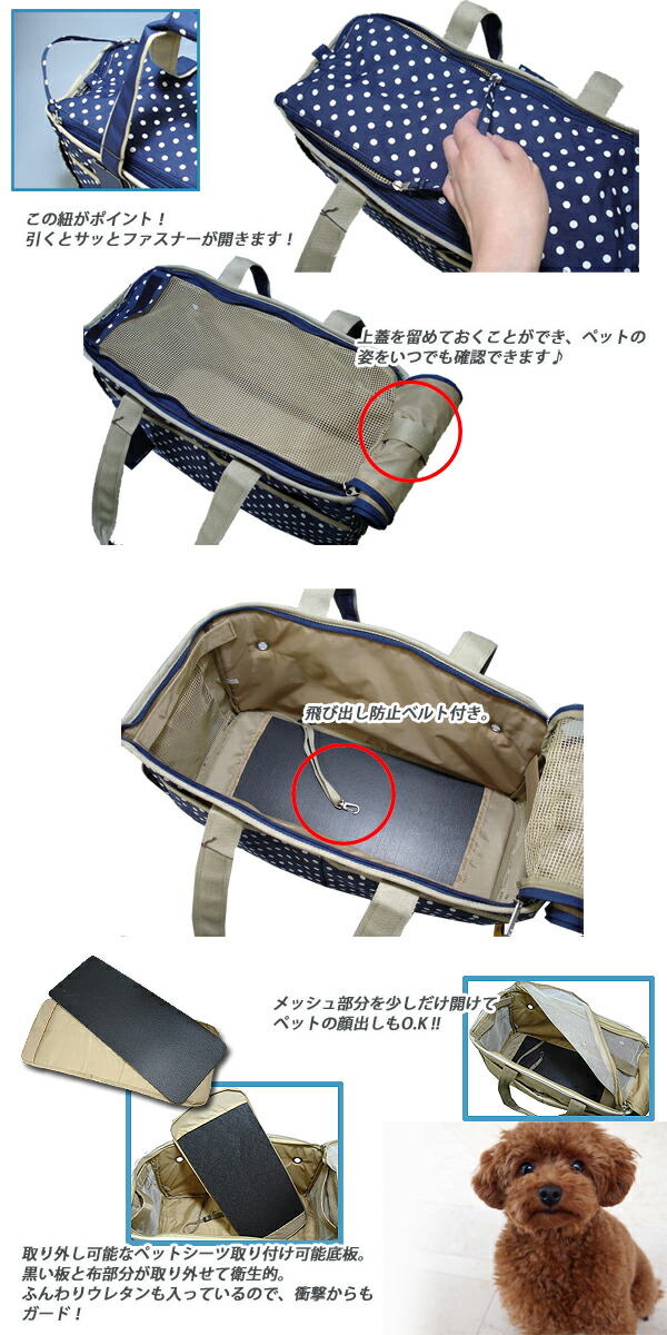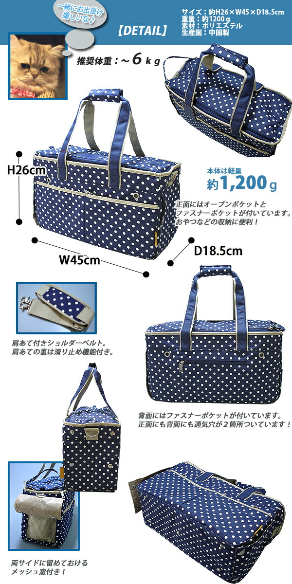 ドット柄 ペットキャリーバッグ PE51 ペットバッグ 〜6Kg 移動便利【D2】