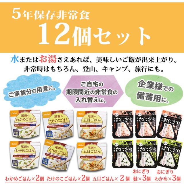 非常食 防災 ごはん おにぎり12個セット 詰め替え用 備蓄用 防災グッズ 非常食 防災 災害対策 地震対策 防災用品 防災セット 避難グッズ 家族 避難用品 キャンプ アウトドア わかめごはん たけのこごはん 五目ごはん 防災 即日発送 ストック 【3-5日】