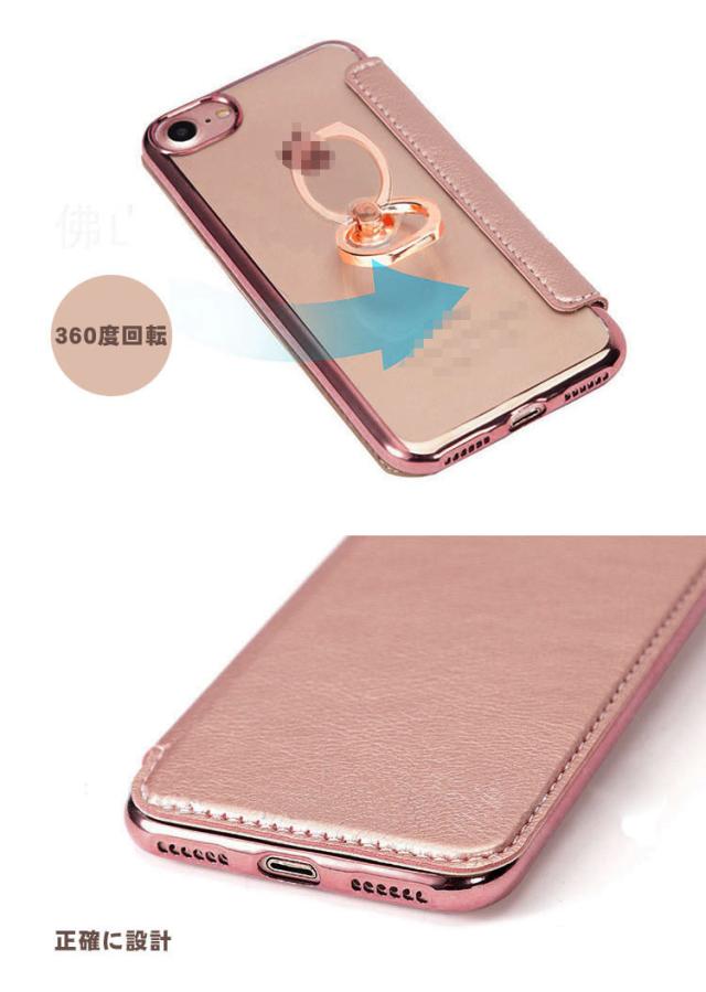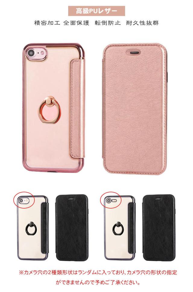 iPhone SE 第3世代/第2世代 ケース/カバー PU 手帳型レザー スタンド機能 カード収納 メッキ リング付き 背面透明ケース アイフォン SE3 2022/SE2 2020/iPhone 8/iPhone 7 手帳タイプ レザーケース おしゃれ おすすめ スマホケース スマホカバー