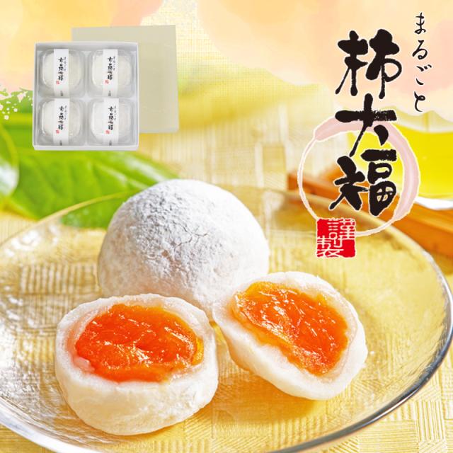 まるごと柿大福4個入/あんぽ柿/和菓子/餅/大福/白あん/生菓子/おもち/フルーツ/干し柿/唯七