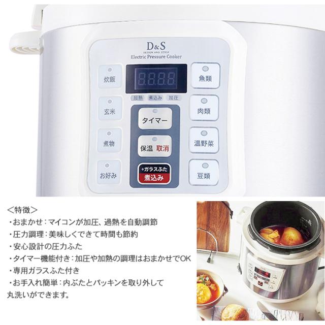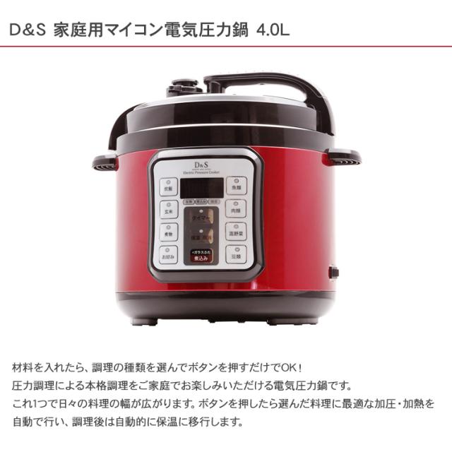 D&S 家庭用マイコン電気圧力鍋 4.0L STL-EC50 調理家電 鍋 圧力鍋 調理器具 便利 時短 隙間時間 タイマー 予約 ほったらかし 家事 本格 料理 キッチン キッチン家電 キッチン用品