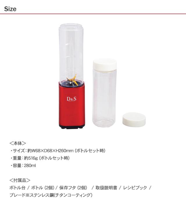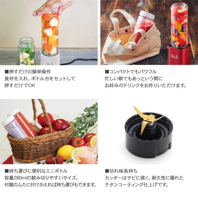 D&S ミニボトルブレンダー DS.7680 調理家電 調理器具 ブレンダー 簡単 ジュース スムージー ヘルシードリンク ミニボトル そのまま飲める 持ち運び 保存 ふた付き キッチン キッチン家電 キッチン用品