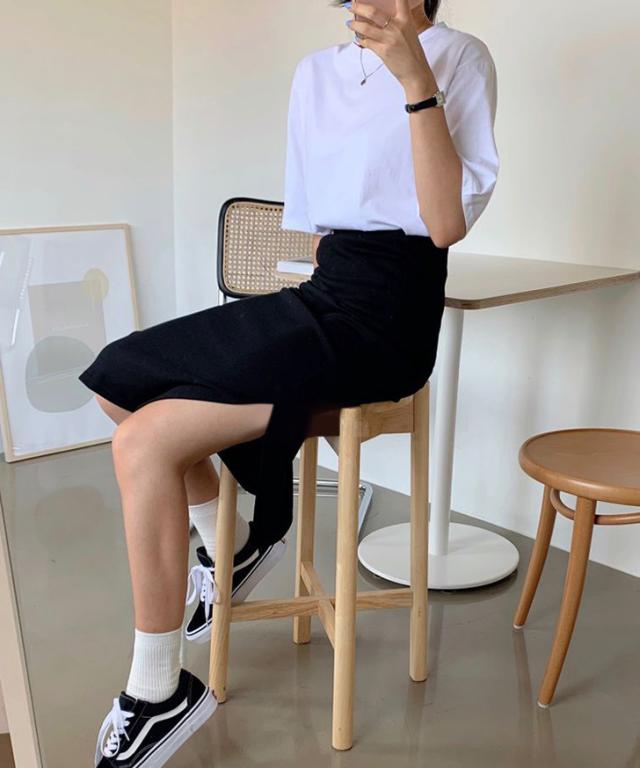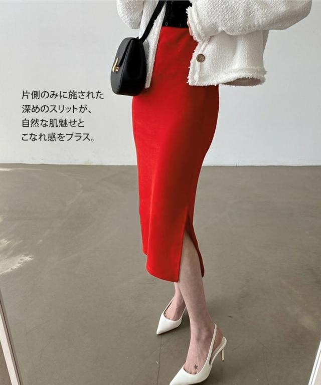 片側のみに施された深めのスリットが、自然な肌魅せとこなれ感をプラス
