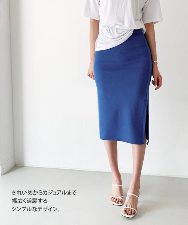 ワンサイドスリットスウェットタイトスカート レディース ボトムス ロング ミモレ丈 膝下 ひざ下 無地 シンプル カジュアル きれいめ ストレート ペンシル Iライン スエット ウエストゴム 美脚 フィット メール便 wfp02395