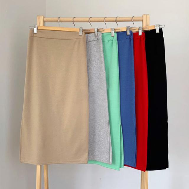スカート ロング ワンサイドスリットスウェットタイトスカート レディース ボトムス ミモレ丈 膝下 ひざ下 無地 シンプル カジュアル きれいめ 秋新作