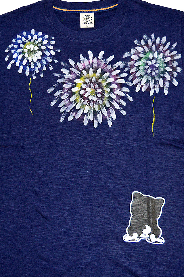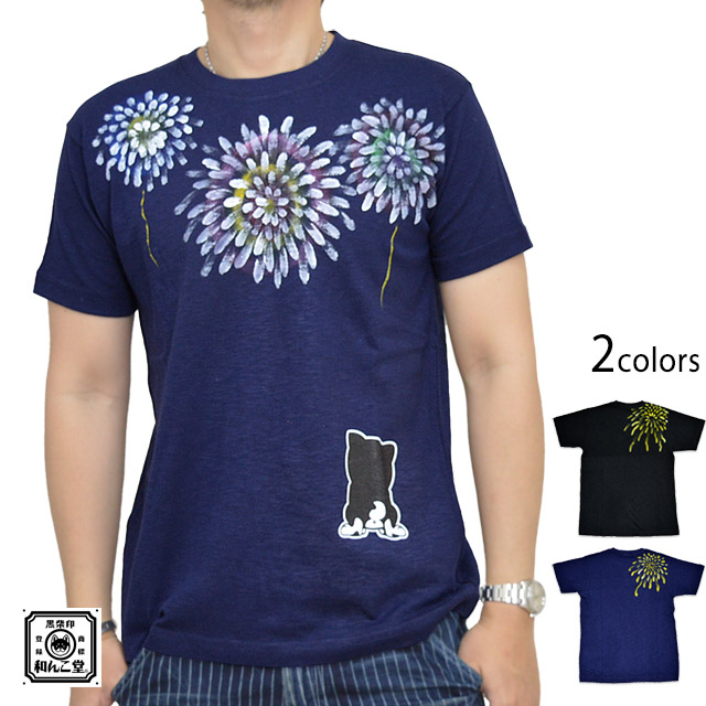 和んこ堂×碧コラボ 花火と黒柴半袖Tシャツ 和んこ堂 KDW2320M 和柄 和風 柴犬 手描き 手書き コラボ あお