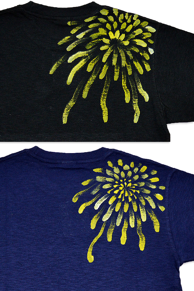 背中にも同様に、右肩に花火を手描きで表現しました。