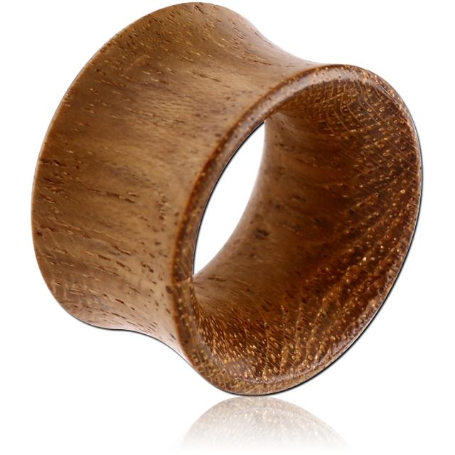 チーク材でできた両側が少し広がったダブルフレア型のボディピアス。