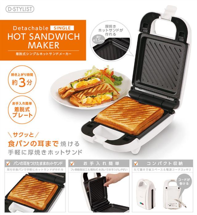 ホットサンドメーカー 電気 【全品P3倍】 耳まで 着脱式 そのまま焼ける 家庭用 6枚切り ホットサンド コンパクト