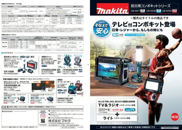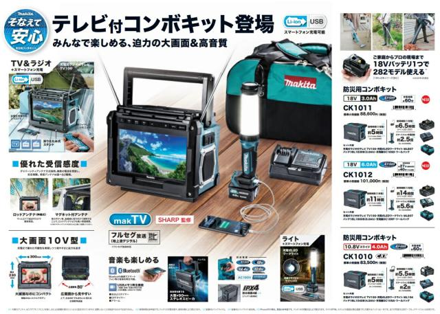 (マキタ) 防災用コンボキット CK1012 セット内容:充電式ラジオ付テレビTV100・充電式LEDワークライトML807・バッテリBL1860B・充電器DC18RF・ツールバッグ makita