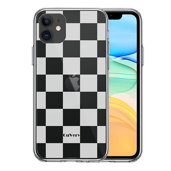 iPhone11 ケース ハードケース クリア カバー 半透明 チェック ホワイト