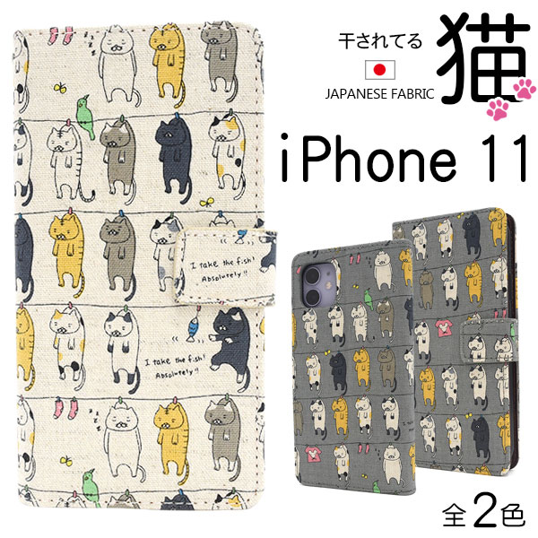 猫好きなら気に入ること間違いなし!!いっぱいの猫達が干されている柄の手帳型ケースです。ちょっとしょんぼりしている感じがして、見ていて飽きないかわいいケースです。麻を使用した生地が手触り抜群です!衝撃やキズなどからiPhoneを守るのはもちろん、カメラ、イヤホンや各種ボタンなどをケースに入れたまま操作可能です。内部はソフトケースなので着脱が簡単!横開きタイプなので、手帳のように使うことができます。背面を折り返すとスタンドとして使用できるので、動画視聴に便利です。内側にはカードポケットとサイドポケットが付いています。また、ストラップとストラップホール付きです。