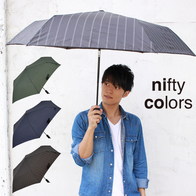 【nifty colors】【晴雨兼用傘】自動開閉 折傘 オートマティックストライプミニ 5090【ニフティカラーズ 傘 簡単開閉 撥水 防水 コンパクト 軽量】