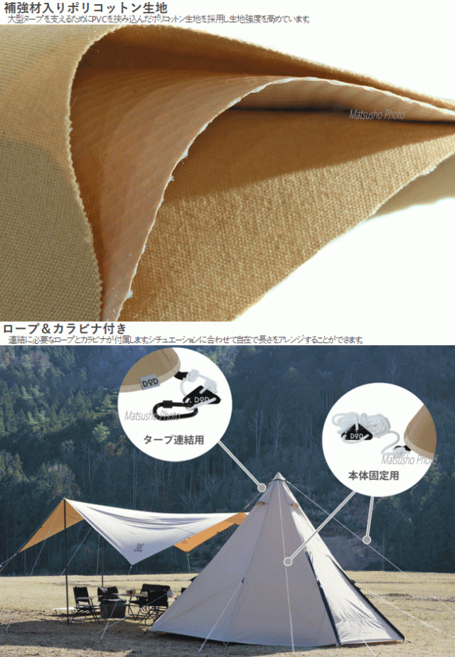DOD アクセサリー ワンポールテント用アクセサリー 補強材入りポリコットン生地 ロープ&カラビナ付き ワンポールテント タープ 連結 アウトドア キャンプ トンガリハット TG1-768-TN タン
