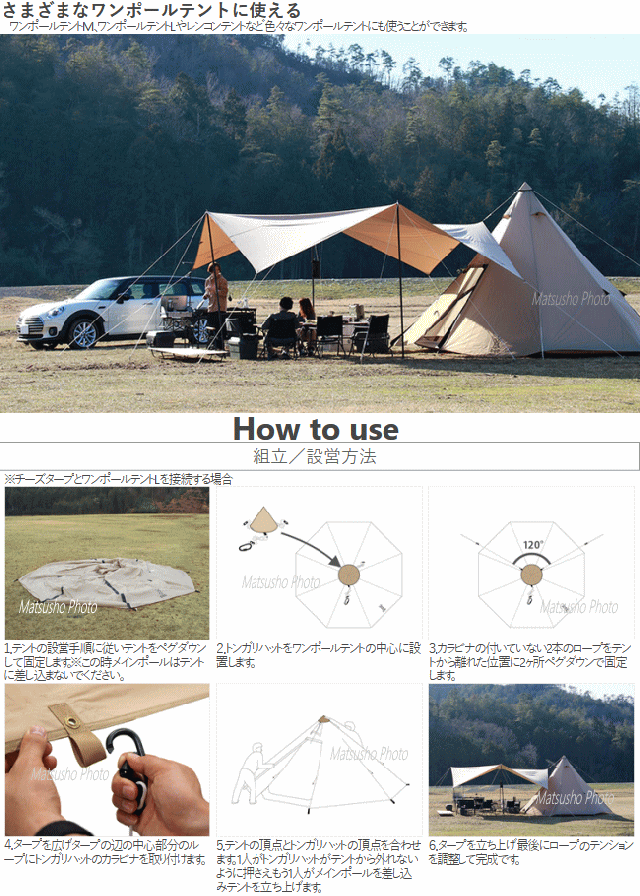 ![]() タープとテントの連結をスマートにするワンポールテント用アクセサリ。 ワンポールテントとタープをスマートに連結するためのアイテムです。 テントとタープを近づけて設営できるのでサイドウォールや前室がないワンポールテント内への 雨の侵入を少なくする事ができます。 ![]() ![]() ![]() |