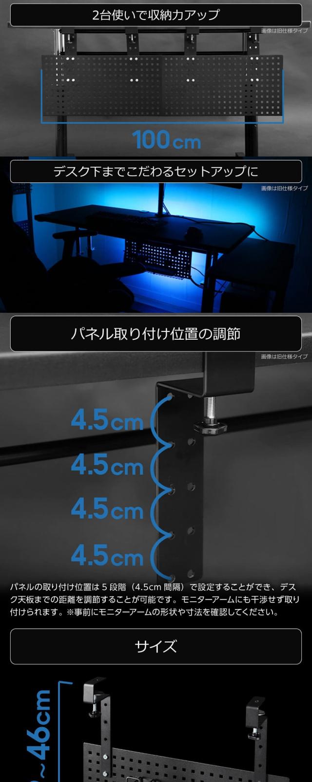 ・パネルの取り付け位置は5段階(4.5cm間隔)で設定することができ、デスク天板までの距離を調節することが可能です。