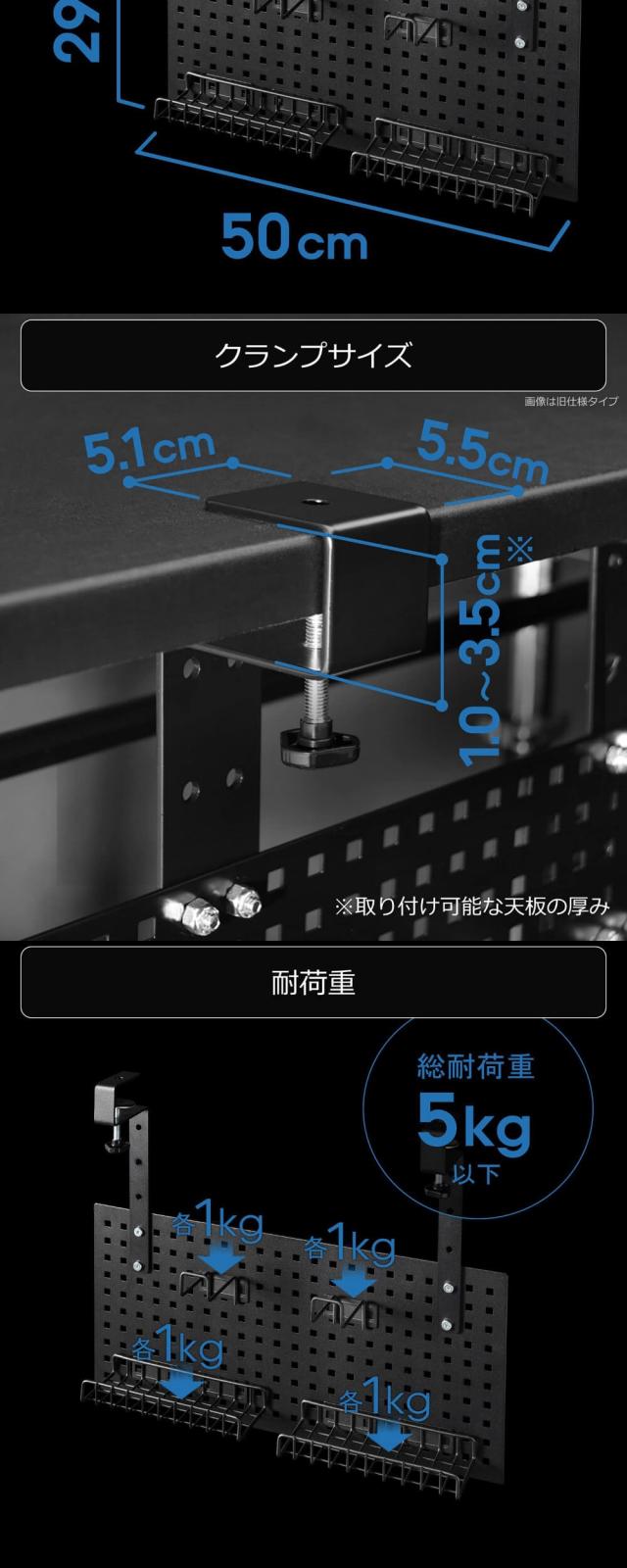 パネルの幅は50cm。奥行き50cm以上のデスクであれば、デスクサイドへ取り付けることも可能です。