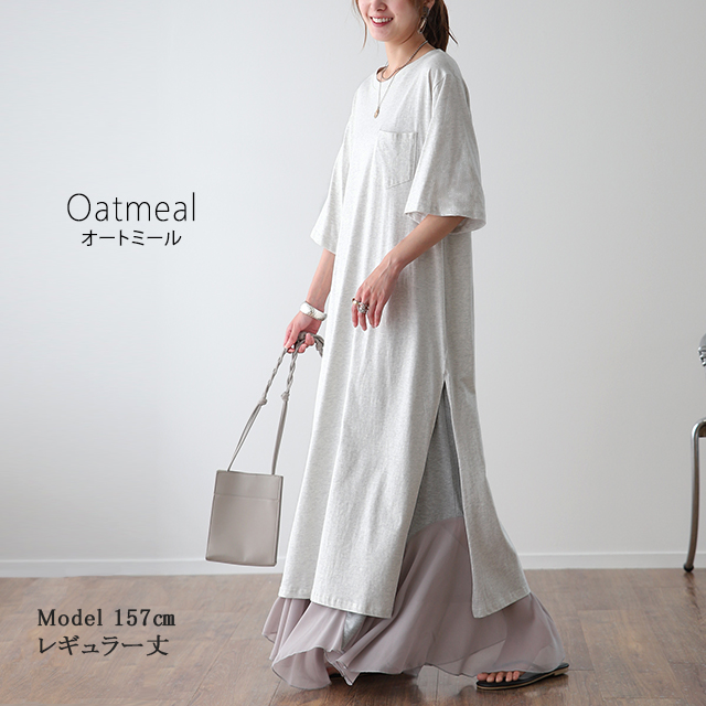 マキシワンピース マキシ スリット 体型カバー Aラインワンピース Aライン Aラインワンピ フレア フレアワンピース フレアワンピ Tシャツ ロング丈 高身長 トールサイズ ビッグシルエット Uネック 丸首 五分袖 半袖 旅行 リゾート リゾートワンピース リゾートワンピ ホワイト 白 白色 オートミール 杢グレー グレー オフホワイト 灰色 ブラック 黒 黒色 モスグリーン グリーン 緑 緑色 アッシュモカ モカ ブラウン ベージュ 茶色 茶 ベイクドキャロット オレンジ 橙 橙色 20代 30代 40代 50代 おしゃれ 母の日 お洒落 オシャレ かわいい 可愛い カワイイ 無地 重ね着 レイヤード レイヤードコーデ シンプル フリーサイズ M L XL XXL 2L 3L HUG.U HUGU ハグユー はぐゆー