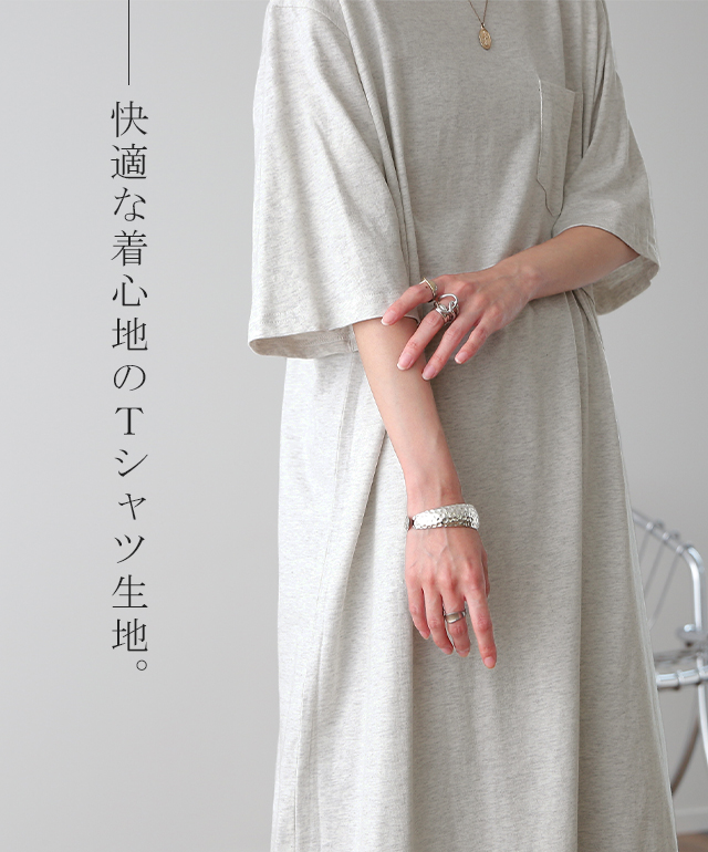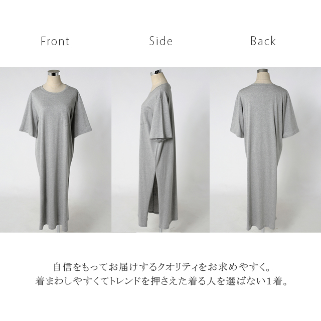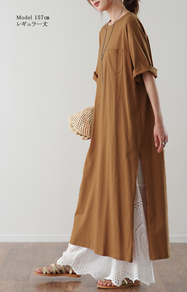 トレンドのスリットでゆるっと着られるTシャツワンピース。
