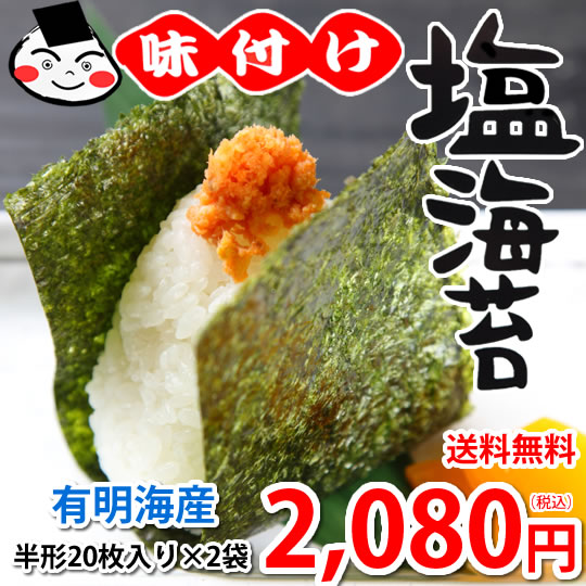 塩のり 海苔 味付け塩海苔 有明海産 送料無料 半形20枚×2袋 お取り寄せ お取り寄せグルメ 有明のり 焼きのり 熊本 天草 ご飯のお供 おにぎり 乾物 乾海苔 のり