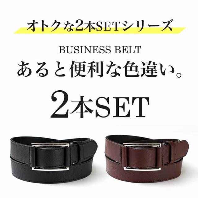 ベルト 2本 セット メンズ ビジネス 男性 無段階 スライドベルト 穴なし ピンなし oth-ux-be-1047 ベルト巾34cm ブラック ブラウン 合皮 カジュアル フェイクレザー 父の日
