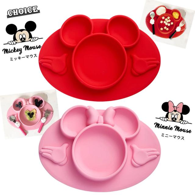 ひっくり返さない! テーブルに吸着するシリコン製 吸盤付きベビー用食器 ディズニー ミッキーマウス ミニーマウス