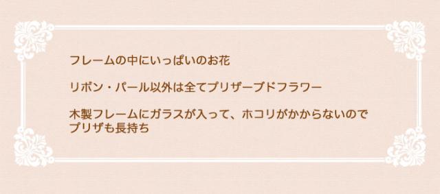 お祝いや贈り物にもすっきりとした色合いは飾る場所を選ばず喜ばれます。ガラスの入った額入りアレンジなので、このままの美しさがずっと続きます。
