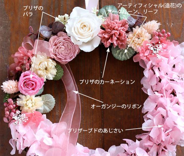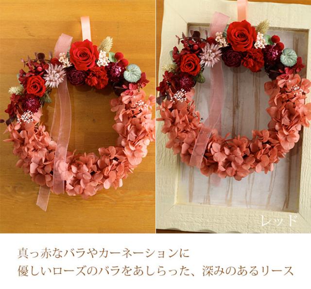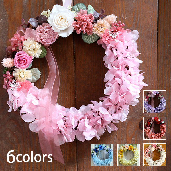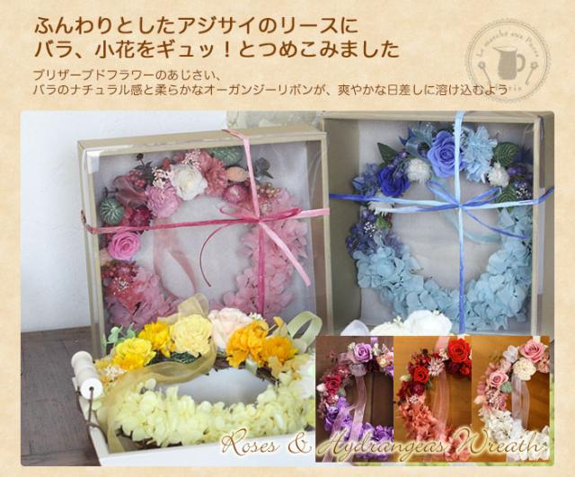 退職祝い 結婚祝い 誕生日 | プリザーブドフラワー | 「あじさいとばらのリース」 リース 花 ギフト プレゼント 結婚式 送別会 お祝い ブリザードフラワー フラワーギフト 枯れない 上品 おしゃれ