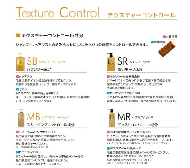 適度な重さと潤い感を与え、中間〜毛先のまとまり感と、なめらかな指どおりのキープを目的としたトリートメントです。
