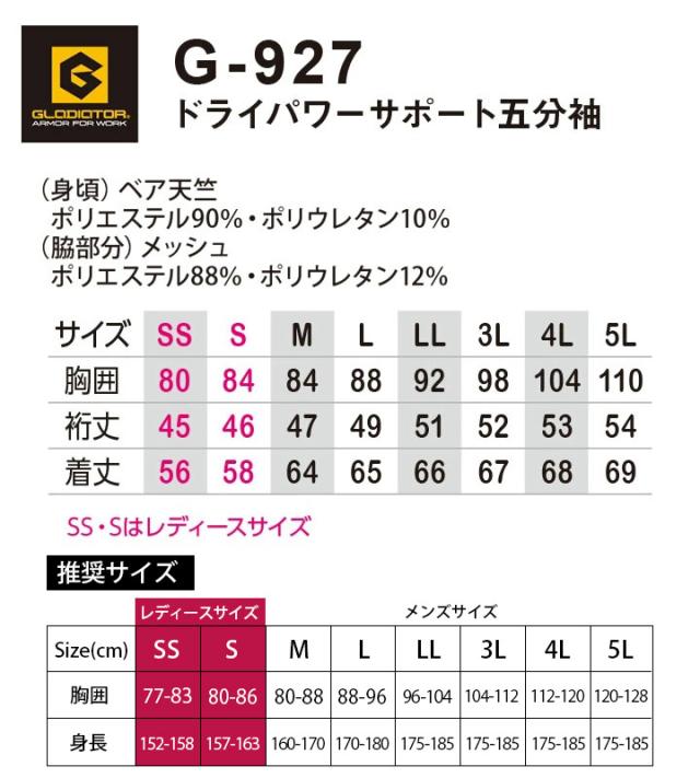 【即日発送】五分袖インナーウェア ドライパワーサポート コーコス G-927 半袖 男女兼用 メンズ レディース コンプレッション ストレッチ 接触冷感 吸汗速乾 消臭 スポーツ 作業服 作業着 CO-COS【SS-3L】