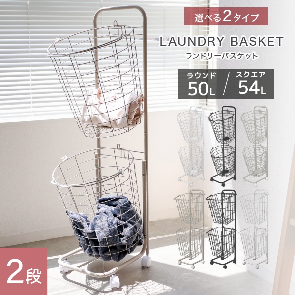 ランドリーバスケット 2段 キャスター付き 洗濯カゴ 丸型 角型 おしゃれ ランドリー ラック ランドリーワゴン ワイヤー WEIMALL かご カゴ 脱衣かご 洗濯かご ラック ランドリー収納 洗濯物入れ シンプル 北欧 一人暮らし 新生活 送料無料