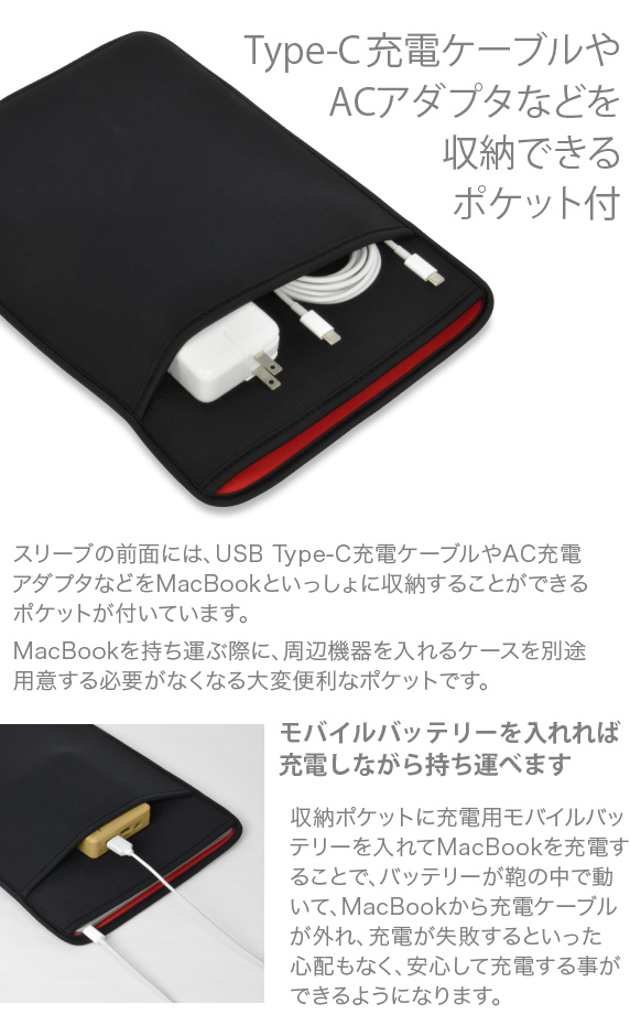 MacBook Pro スリーブケース 13/14インチ MacBook Pro&Air 用 JustFit. 周辺機器が入る便利なポケット付 優しく保護する柔らか素材