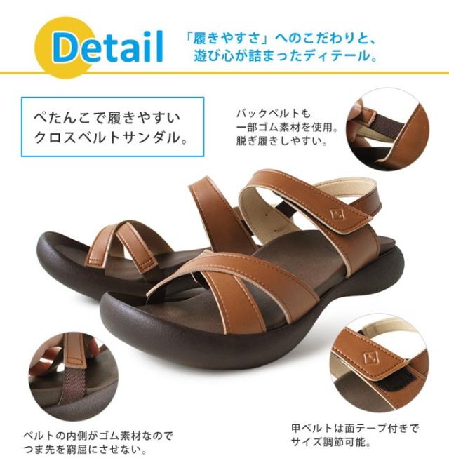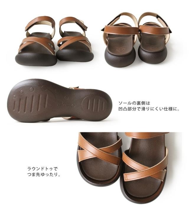 クロスベルトストラップサンダル フィールドソール バックストラップ コンフォート ローヒール ぺたんこ 歩きやすい 痛くない