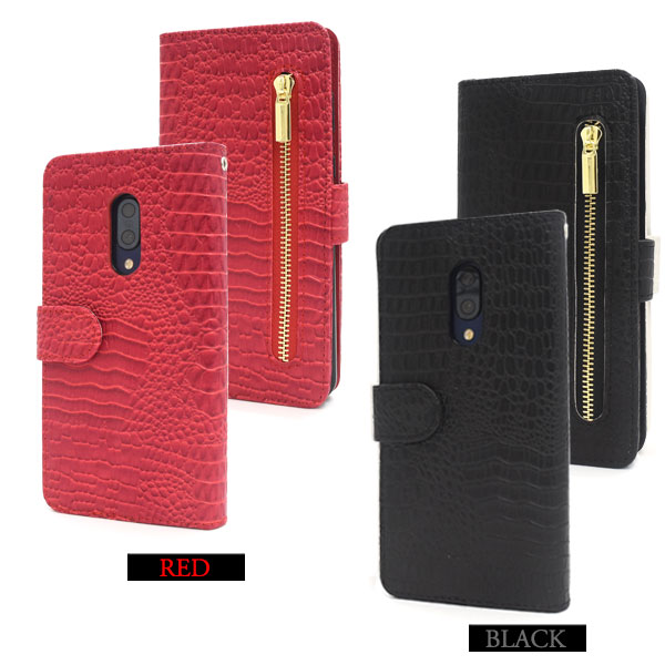 クロコダイルレザーデザインの手帳型ケース。