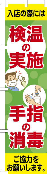スリム のぼり旗「検温の実施 手指の消毒」感染症予防 既製品のぼり 納期ご相談ください【メール便可】 450mm幅