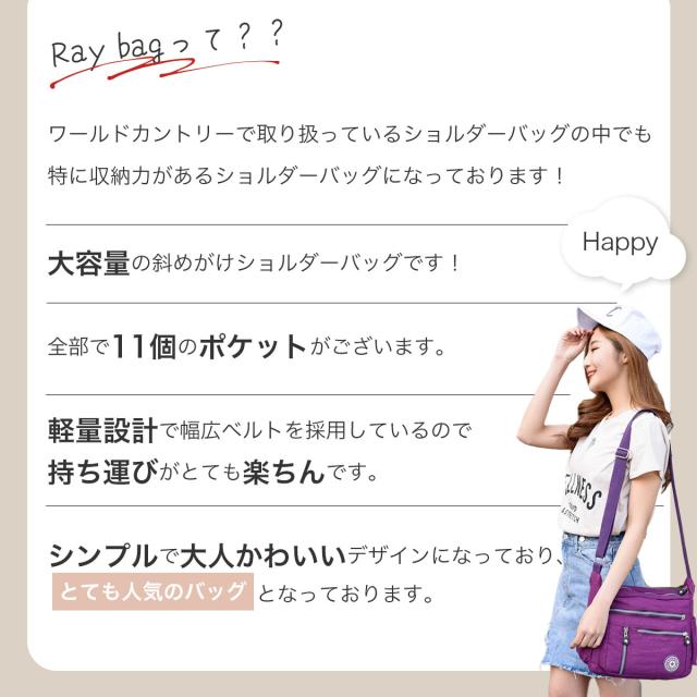 レイバッグ ( ray bag ) ポケット たくさん バッグ 多収納 ショルダーバッグ ナイロンショルダーバッグ レディース ナイロン 斜めがけバッグ ショルダーバック スポーツブランド 斜めがけ ミドルサイズ トートバッグ 荷物 40代 大容量 大きめ 防水 軽量 多機能 大人