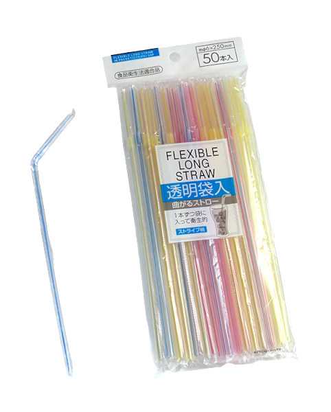 袋入曲がるストロー ストライプ ロング 25cm 50本入 (100円ショップ 100円均一 100均一 100均)