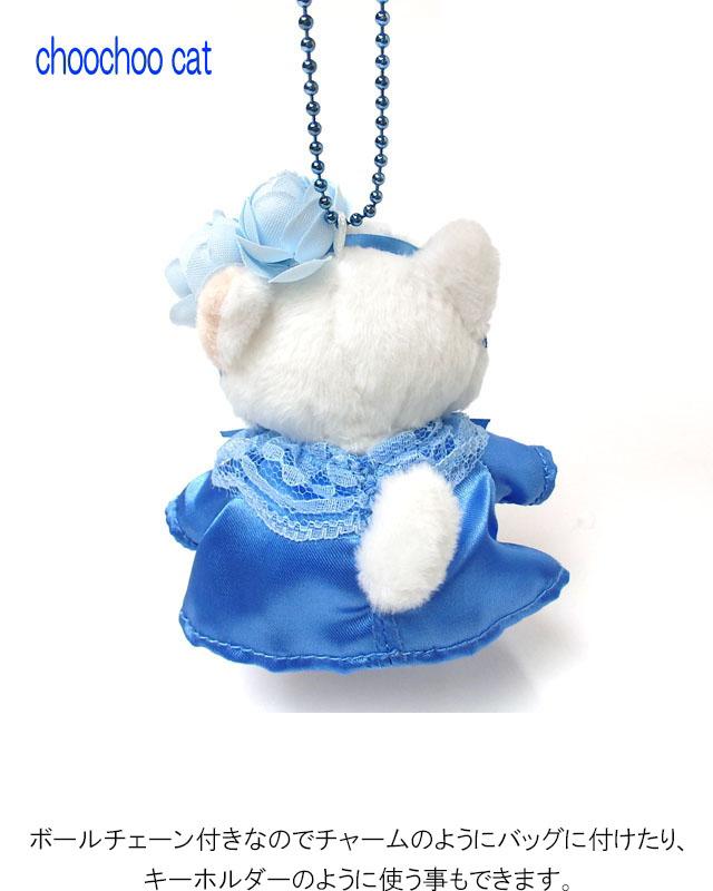 ぬいぐるみマスコット ブルーローズ 白猫 choochoo本舗 チューチュー本舗 猫雑貨 猫グッズ 女性 レディース かわいい 内藤デザイン