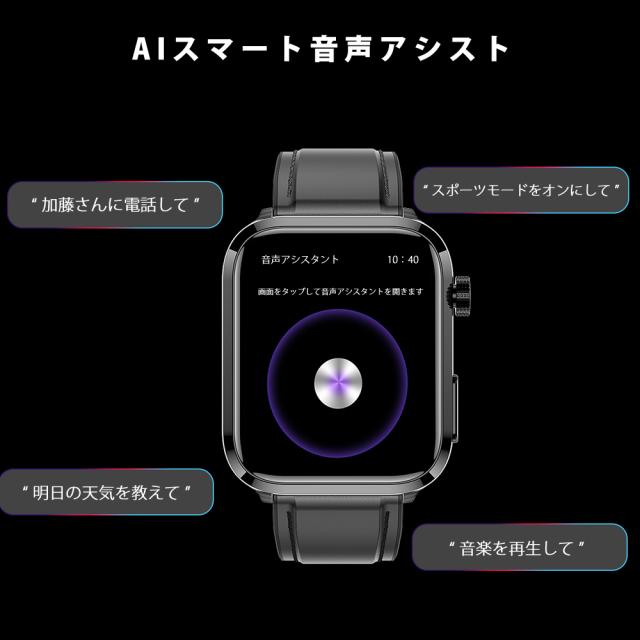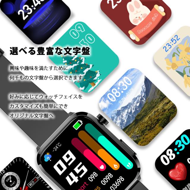 主な機能 - 着信通知 (電話/メール/SMS/SNS)- 血中酸素、通話、血圧、心拍数計測、睡眠検測、血糖測定、心電図機能など